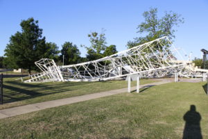 Those 75-mile-an hour winds that hit Oklahoma City over the weekend devastated some oil and gas historical items located at the Oklahoma History Center. Among the losses…a restored wooden derrick and a derrick installed at the Capitol in 1934 and relocated just 12 years ago when the new history center opened. “What we’re doing right …