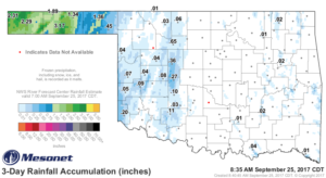 The dry spell has ended in the Oklahoma Panhandle with more than 3 inches of rain around the Guymon area as of Monday morning. Other areas, according to the Oklahoma Mesonet received more than 2 inches of rain as a cool front entered the state. State Climatologist Gary McManus said the showers and storms will …