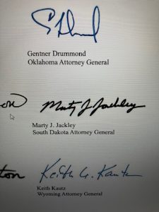 Other signatories included Kris W. Kobach, Kansas Attorney General; Catherine L. Hanaway, Missouri Attorney General; Tim Griffin, Arkansas Attorney General; Brenna Bird, Iowa Attorney General; Mike Hilgers, Nebraska Attorney General; and Ken Paxton, Texas Attorney General.